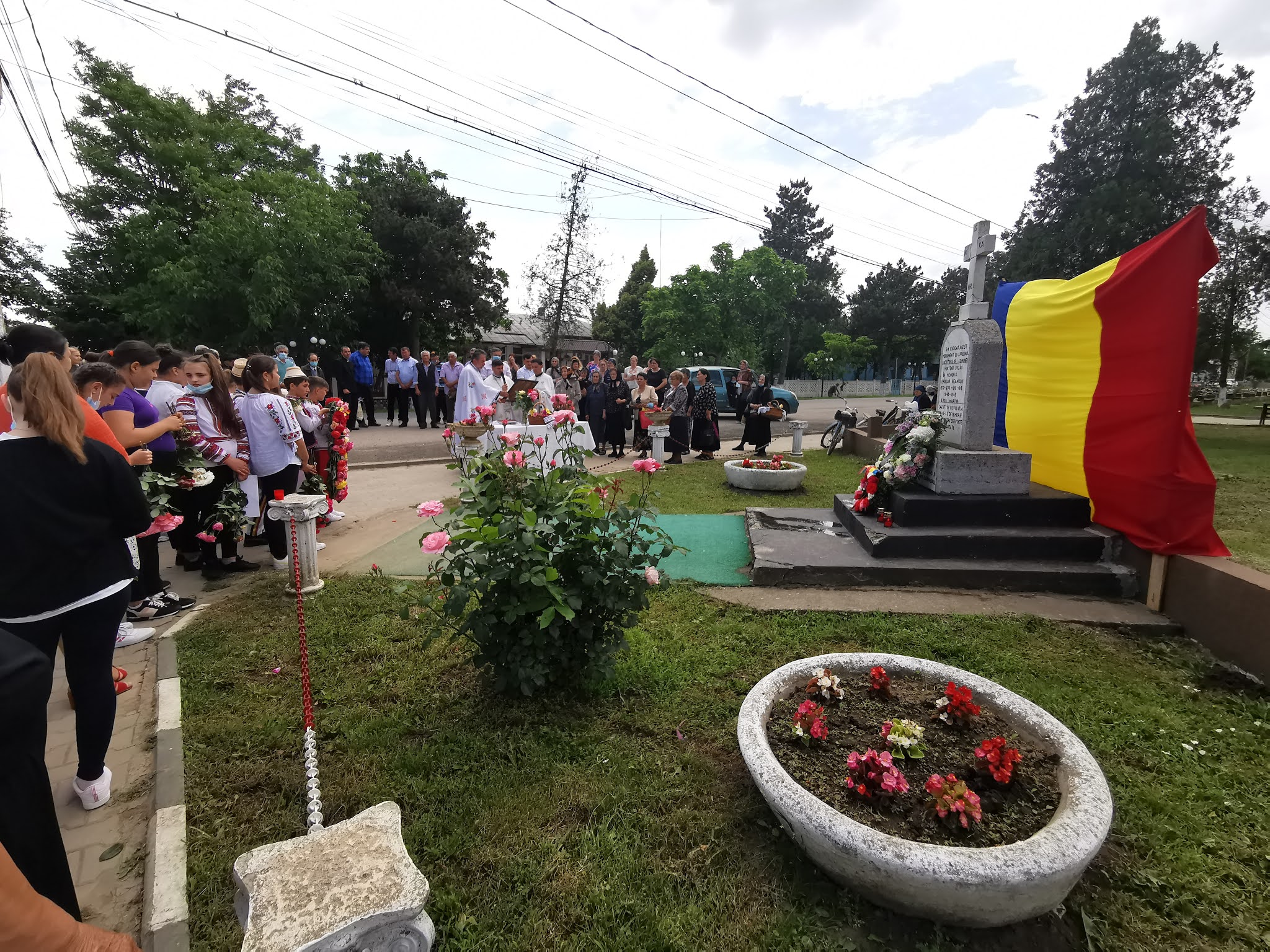 10 Iunie 2021, ziua Înălțării Domnului, așa cum este scris în calendarul creștin-ortodox este și ziua când se cinstesc eroii neamului românesc din cele două războaie mondiale . Cu acest prilej, după săvârșirea Sfintei Liturghii la bisericile din localitate ne-am adunat la Monumentul Eroilor din centrul comunei pentru a aduce un omagiu înaintașilor noștri. Activitatea a fost una emoționantă pentru toți participanții ,mai ales că printre ei s-au regăsit și rude ale celor dispăruți pe câmpul de luptă . S-a oficiat slujba de pomenire de către preacucernicii preoți, s-au depus coroane de flori de către autoritățile locale, iar copiii au recitat poezii și au așternut cu gingășie flori în fața monumentului.